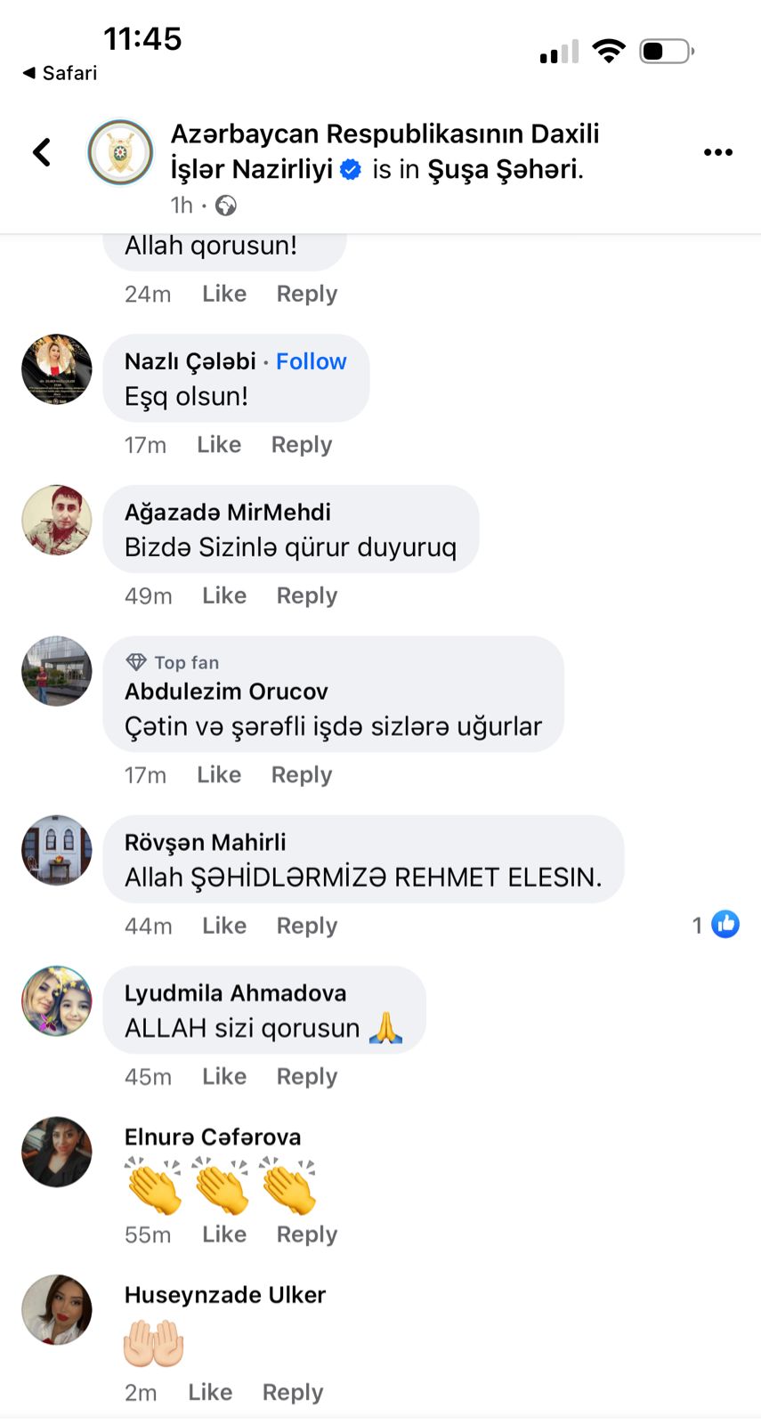 Sözügedən fotolar sosial şəbəkə istifadəçiləri tərəfindən rəğbətlə qarşılanıb. İzləyicilər polislərimizlə qürur duyduqlarını yazıblar.