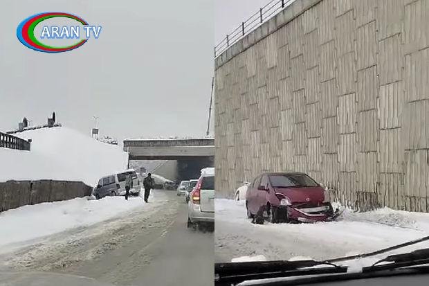 Görüntülərdə qarlı hava şəraiti zamanı, yolların buz olması səbəbindən idarəetməni itirərək qəza törədən avtomobillərin görüntüləri əks olunub.
