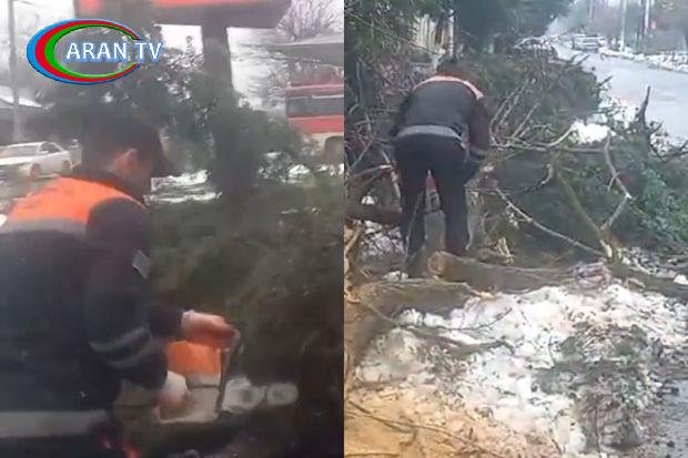 Bildirilib ki, şəhər ərazisində bəzi küçə və prospektlərdə irigövdəli ağaclar aşaraq yollarda hərəkətə maneə törədib, binaların dam örtüklərində dəmir parçaları qopub asılı vəziyyətdə qalaraq vətəndaşlar üçün təhlükəli vəziyyət yaradıb.