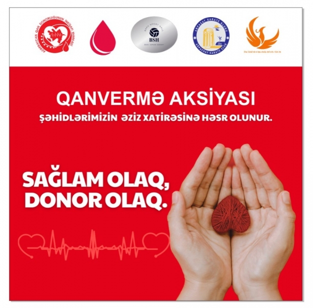 Şəhidlərin əziz xatirəsinə həsr olunmuş “Sağlam olaq – Donor olaq” şüarı altında qanvermə aksiyası təşkil olunacaq
