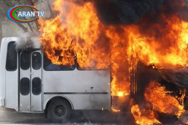 Gəncədə avtobus yanıb
