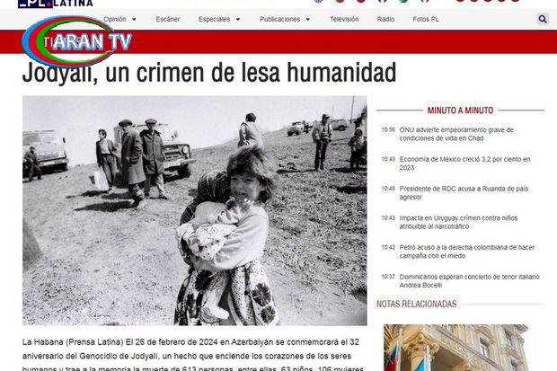 Kubanın nüfuzlu mətbuat orqanlarından biri “Prensa Latina” xəbər agentliyinin rəsmi səhifəsində Azərbaycanın Kubadakı səfiri Ruslan Rzayevin “Xocalı, insanlığa qarşı cinayət” (“Jodyalí, un crimen de lesa humanidad”) başlıqlı məqaləsi dərc olunub.