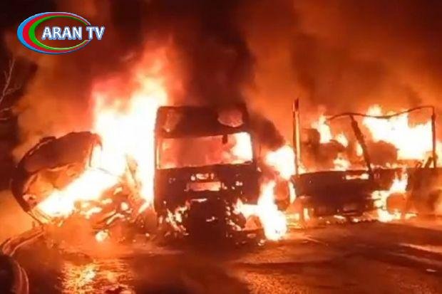 Rusiyanın Çelyabinsk vilayətində iki yük maşınının toqquşması nəticəsində dəhşətli yanğın başlayıb, sürücülərdən biri faciəvi şəkildə həlak olub.