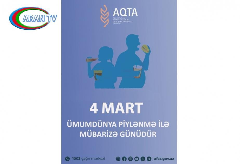 Bu barədə Qida Təhlükəsizliyi Agentliyinin 4 Mart Piylənmə ilə Mübarizə Günü ilə bağlı yaydığı məlumatda deyilir.