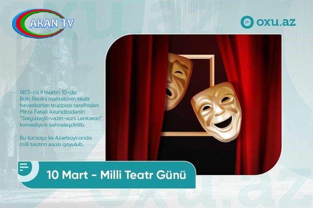 ARANTV.AZ xatırladır ki, XIX əsrin 70-ci illərində Azərbaycanda milli teatrın yaranması mədəniyyətimizin tarixində çox böyük hadisə olub. 1873-cü il martın 10-da Bakı Realnı məktəbinin teatr həvəskarları truppası tərəfindən M.F.Axundzadənin “Sərgüzəşti-vəziri-xani Lənkəran” komediyası tamaşaya qoyulub.