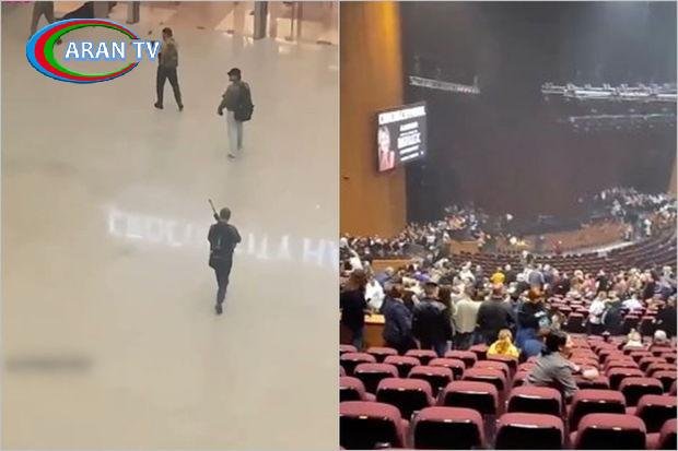Kadrların birində atışmanın yeni başladığı vaxt zaldan möcüzəvi şəkildə sağ-salamat qaçmağı bacaran insanlar əks olunub.