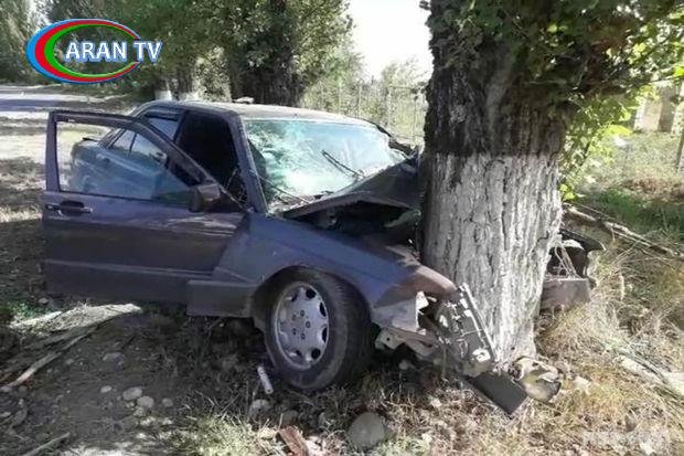 Oğuzda minik avtomobili ağaca çırpılıb