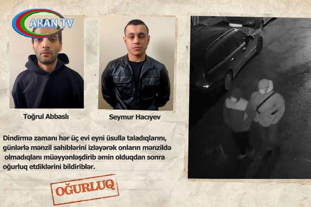 Səbail Rayon Polis İdarəsinin 41-ci Polis Bölməsi əməkdaşları tərəfindən keçirilən əməliyyat tədbirlərilə hadisələri törədən, əvvəllər məhkum olunmuş 1993-cü il təvəllüdlü Toğrul Abbaslı və həmyaşıdı Seymur Hacıyev saxlanılıblar. Onlar dindirmə zamanı hər üç evi eyni üsulla taladıqlarını, günlərlə mənzil sahiblərini izləyərək axşam saat 19:00-22:00 aralığında onların mənzildə olmadıqlarını müəyyənləşdirib əmin olduqdan sonra oğurluq etdiklərini bildiriblər.