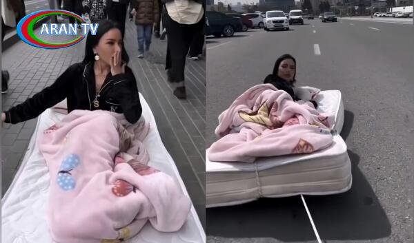 Bakıda gənc qızdan QƏRİBƏ HƏRƏKƏTLƏR: küçənin ortasına matras atıb “yatdı” – VİDEO