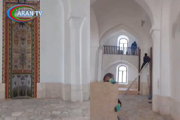 Görüntülərdə Ağdam Cümə məscidində aparılan bərpa işləri yer alıb.