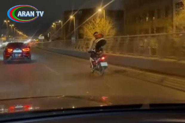 Bakıda motosiklet sürücüsü yolda təhlükəli hərəkətlər edib.