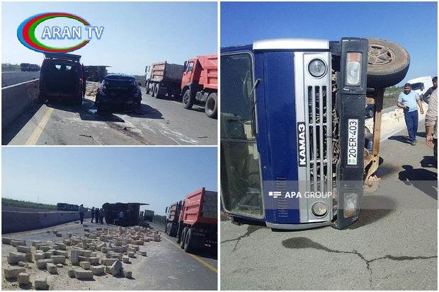 APA-nın xəbərinə görə, hadisə Bakı-Qazax əsas magistral yolunun rayonun Alpı kəndindən keçən hissəsində qeydə alınıb. Qazax istiqamətində hərəkətdə olan “KamAZ” markalı yük maşını ilə “Mercedes Vito” markalı mikroavtobus və “Mercedes-Benz” markalı minik maşını toqquşub.