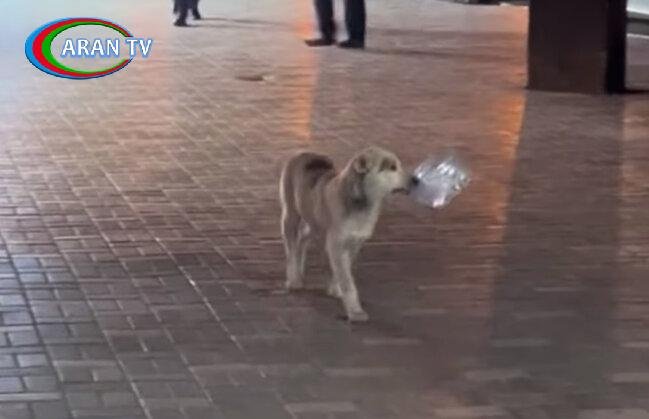 BAKU.WS xəbər verir ki, şəhərdə itlərdən biri ağzında qab gətirərək insanlardan su istəyib.