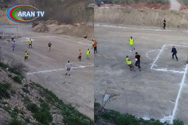 İşğaldan azad olunan Kəlbəcərdə tikinti işçilərinin futbol oynamaları diqqət çəkib.