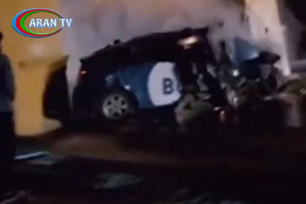 Bakıda ağır qəza: “Prius” betona çırpıldı – VİDEO