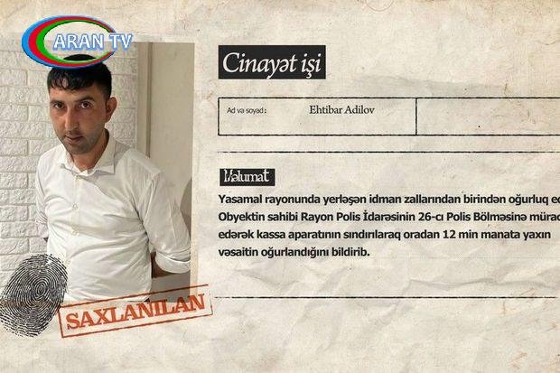 Qeyd olunub ki, paytaxtın Yasamal rayonunda yerləşən idman zallarından birindən oğurluq edilib. Obyektin sahibi Yasamal Rayon Polis İdarəsinin 26-cı Polis Bölməsinə müraciət edərək kassa aparatının sındırılaraq oradan 12 min manata yaxın vəsaitin oğurlandığını bildirib.