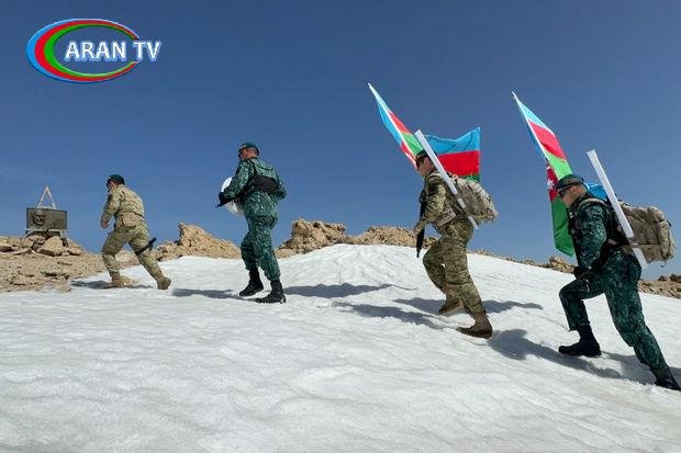 Zirvədə “Həyatı nəsillərə nümunə olan və xalqın qəlbində əbədi yaşayan ümummilli lider Heydər Əliyev – 101 il” sözləri yazılmış plakatı, ulu öndərin fotoşəkilini, şanlı Zəfər bayrağımızı və Dövlət Sərhəd Xidmətinin emblemini ucaldaraq Dövlət Himnini ifa ediblər.