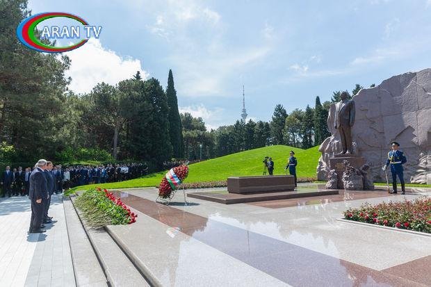 Ziyarətçilər ulu öndərin məzarı üzərinə əklil və gül dəstələri qoyaraq dahi şəxsiyyətin əziz xatirəsini dərin ehtiramla yad ediblər.