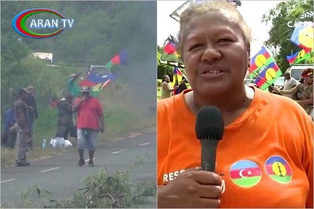 Belə ki, öz hüquqlarının tələb edən aksiyaçılardan birinin əynində üzərində Azərbaycan bayrağı olan köynək olub. O, yerli əhalinin – kanakların səsinin Baş Assambleyada eşidiləcəyinə ümidini ifadə edib.