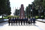 ARANTV.AZ xəbər verir ki, nümayəndə heyəti, həmçinin Şəhidlər xiyabanında Azərbaycanın azadlığı və müstəqilliyi uğrunda mübarizədə canlarını qurban vermiş qəhrəman Vətən övladlarının da əziz xatirəsini ehtiramla yad edib, məzarları üzərinə tər güllər düzüb.