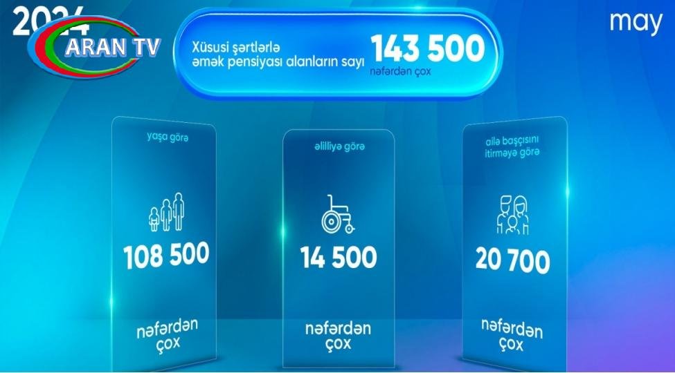 2024-cü ilin may ayında xüsusi şərtlərlə əmək pensiyası alanların sayı 143 500 nəfərdən çox olub.