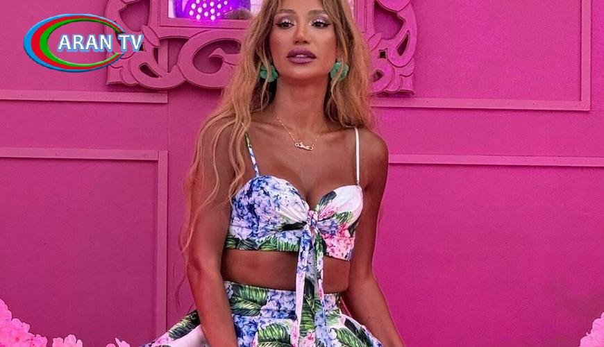 “Barbi” konseptində hazırlanan ad günü şousu üçün sənətçi arxası uzun, öndən qısa gül printləri ilə bəzədilmiş “top” və ətək geyinib.