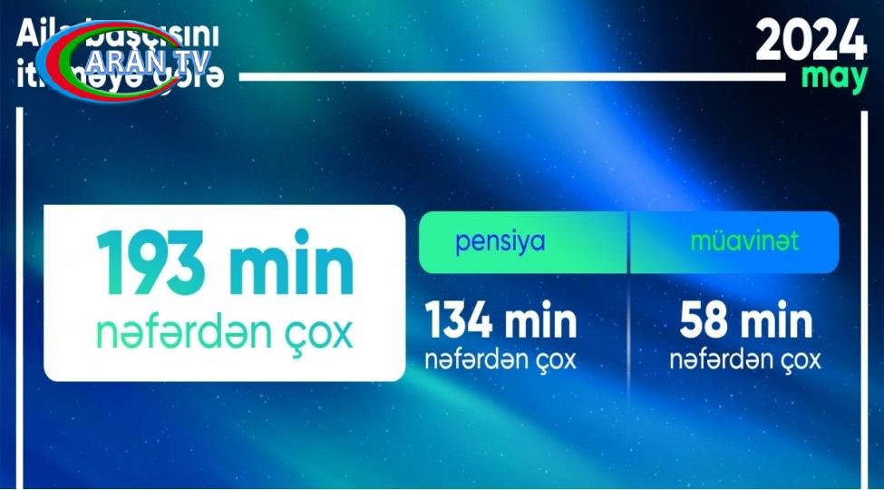2024-cü ilin may ayında ailə başçısını itirməyə görə 193 min nəfərdən çox şəxsə pensiya və müavinət ödənilib.