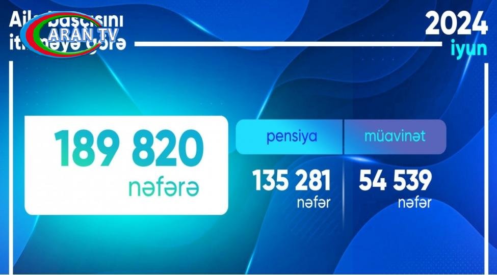 2024-cü ilin iyun ayında ailə başçısını itirməyə görə 189.820 nəfərə pensiya və müavinət ödənilib.