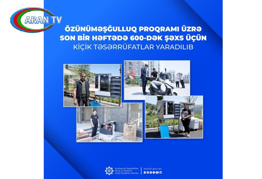 Nazirliyin İctimaiyyətlə əlaqələr şöbəsindən AZƏRTAC-a verilən məlumata görə, son bir həftədə Bakı və regionlarda 600-dək işsiz və işaxtaran şəxs həmin proqram çərçivəsində mal və materiallar formasında aktivlərlə təmin olunub.