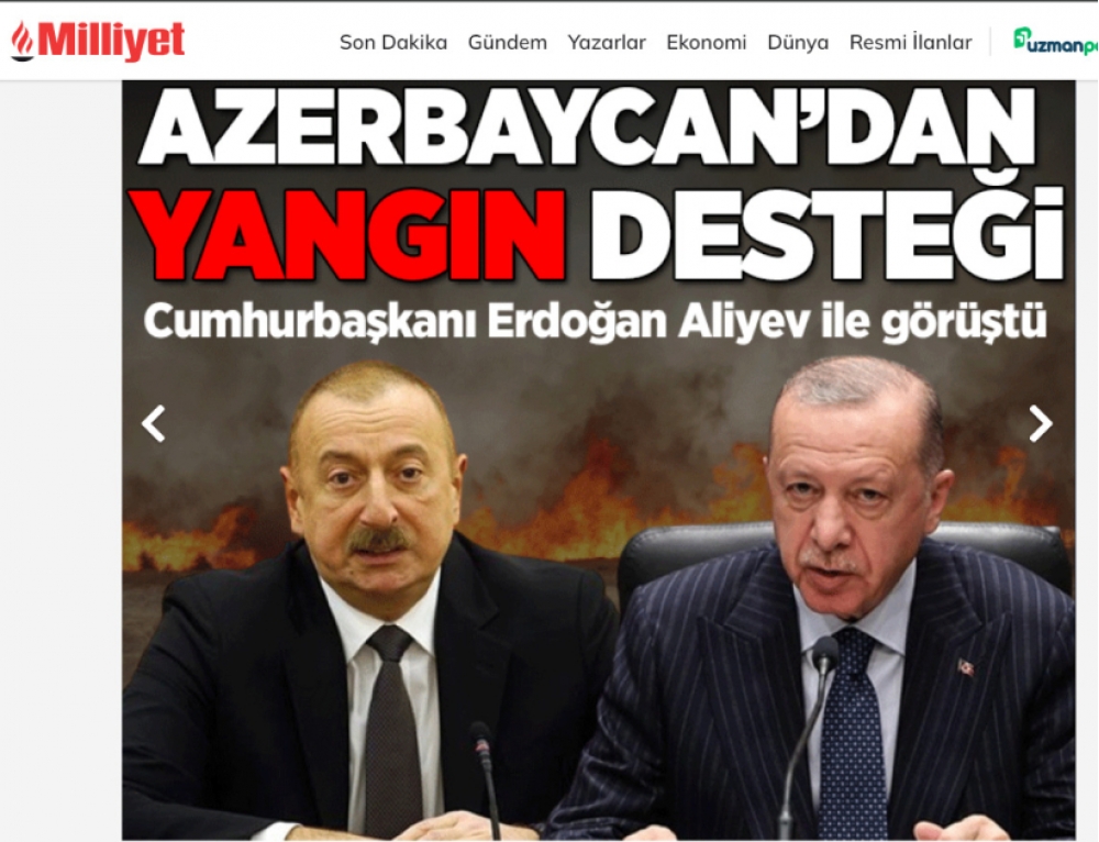 ARANTV.AZ xəbər verir ki, qardaş ölkənin media strukturları Türkiyənin müxtəlif bölgələrində baş verən irimiqyaslı meşə yanğınlarının söndürülməsi səylərinə Azərbaycanın dəstəyinin vacibliyinə diqqət çəkiblər.
