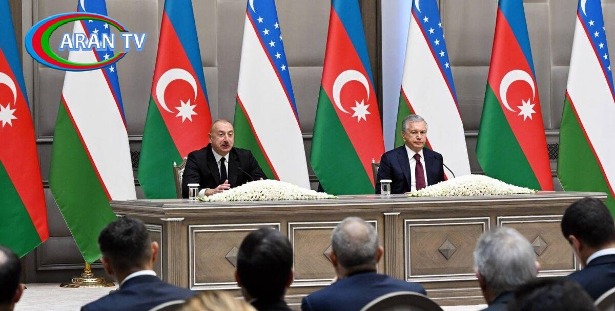 Prezident İlham Əliyevin müxtəlif dövrlərdə, xüsusən son illərdə Özbəkistana dəfələrlə səfəri olmuşdur. Müttəfiqlik münasibətləri haqqında müqavilə iki ölkənin imzalaya biləcəyi ən yüksək beynəlxalq sənəddir. İki qardaş xalq, iki müstəqil, güclü, suveren, nüfuzlu dövlət rəsmi müttəfiq oldular. Bu, çox mühüm xarici siyasət addımıdır və gələcək illərdə bizim münasibətlərimizi, həmçinin bir çox hallarda regional siyasəti müəyyən edəcək. Çünki müxtəlif – regional və beynəlxalq siyasət məsələləri müzakirə olunmuşdur. Bu gün Mərkəzi Asiya, Cənubi Qafqaz, Xəzər regionları vahid geosiyasi regiona çevrilir və regionlarımızda müsbət proseslər Özbəkistan ilə Azərbaycan arasında səmərəli əməkdaşlıqdan asılıdır. İlham Əliyev- bizim bu gün müzakirə etdiyimiz məsələlər arasında yalnız bir layihəni ayrıca qeyd etmək istərdim, çünki o, əlamətdardır – bu, işğaldan azad olunmuş Xankəndi şəhərində yeni yüngül sənaye müəssisəsinin yaradılmasıdır. Bu, xalqlarımızın qardaşlığının və dostluğunun daha bir rəmzidir. Biz həmişə – istər işğal, istərsə də İkinci Qarabağ müharibəsi illərində və sonra da özbək xalqının qardaş dəstəyini hiss etmişik. Hərbi və hərbi-texniki sahələrdə nəzərdə tutulan əməkdaşlığı xüsusi qeyd etmək istərdim. Bu sahə hər bir ölkə üçün, xüsusən bizim ölkələr üçün prioritet əhəmiyyət kəsb edir. Bizim yerləşdiyimiz regionlar təhlükəsizliyin və müdafiə qabiliyyətinin möhkəmlənməsi məsələlərinə gündəlik diqqət tələb edir. Buna görə də, düşünürəm ki, bu gün razılığa gəldiyimiz məsələlər yerinə yetiriləcək. Biz təcrübə mübadiləsi, hərbi-texniki sahədə, müdafiə istiqamətli təhsil sahəsində əməkdaşlıq üzrə fəal əlaqə saxlayacaq, həmçinin təhlükəsizliyimizi qarşılıqlı möhkəmlədəcək addımlarımızı planlaşdıracağıq. Daşkənddə keçirilən biznes-forum layihələri çox zəngin olub. 20 istiqamət üzrə irəli sürülmüş yeni təşəbbüslər əməkdaşlıq əlaqələrini daha zəngin edəcəkdir. İndi Özbəkistanla Azərbaycan arasında mövcud olan ən yaxşı siyasi konyunktura heç bir yerdə mövcud deyil. Ona görə də bu, iş adamlarımızı birlikdə işləməyə və o cümlədən birgə investisiya qoymağa sövq edən ən vacib amillərdən biridir. Özbək investorları üçün Azərbaycanda işləmək, sərmayə qoymaq da əlverişli və faydalı olacaqdır. Birlikdə mühüm layihələrə start verəcəyik – bu, mehmanxanaların, tekstil klasterlərinin, tikiş fabriklərinin tikintisi, inşaat materiallarının istehsalı və digərləridir. Bildiyiniz kimi belə layihələrin həyata keçirilməsi üçün 500 milyon dollar kapitalı olan birgə investisiya şirkəti fəaliyyət göstərir. Üçüncü ölkələrdə perspektivli layihələrdə iştirakı nəzərdən keçirmək üzrə razılığa gəldik. Biz, həmçinin nəqliyyat əlaqələrinin möhkəmləndirilməsi, o cümlədən Trans-Xəzər dəhlizinin inkişafı vasitəsilə birgə səyləri davam edəcəkdir. Regionlararası əlaqələrin potensialından maksimum istifadə edəcəyik. May ayında Quba şəhərində regionların forumu uğurla keçirildi. Regionlararası kooperasiya üzrə yol xəritəsini qəbul etmək, növbəti forumun gələn il Kokand şəhərində keçirilməsi, paytaxtlarda turistik komplekslərin yaradılması qərara alındı. Mədəniyyət, gənclər, informasiya siyasəti, elm, təhsil və idman sahələrində fəal mübadiləni davam etdirəcəyik.Odur ki, bu kapitalı həm ikitərəfli gündəlik, həm də üçüncü ölkələrə investisiyalar ilə çıxış üçün artıracağıq.Qardaş ölkələr, müttəfiqlər kimi inamla, layiqincə, çiyin-çiyinə addımlayaraq və irəliləməyə davam edəcəkdir.