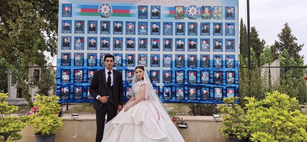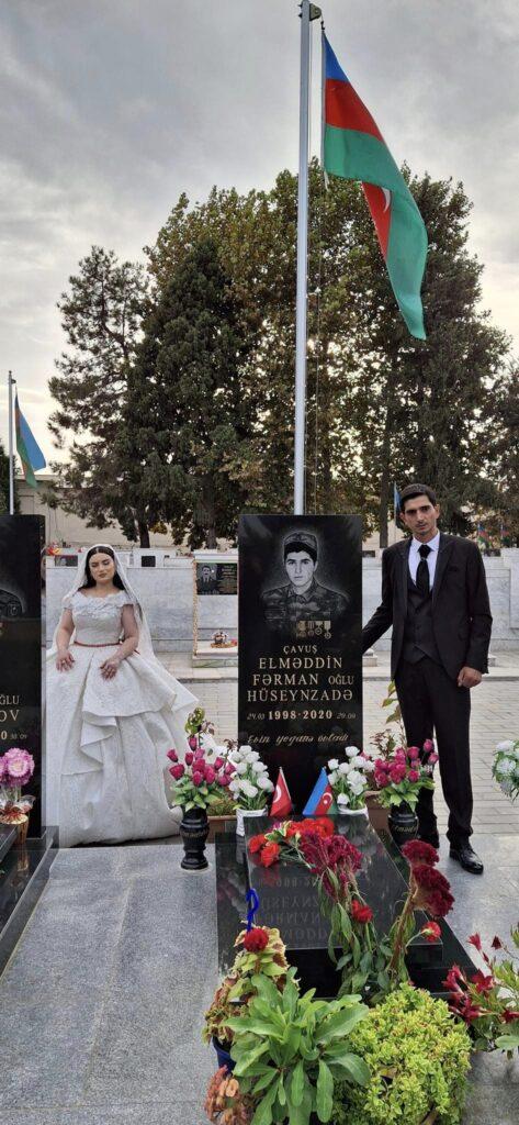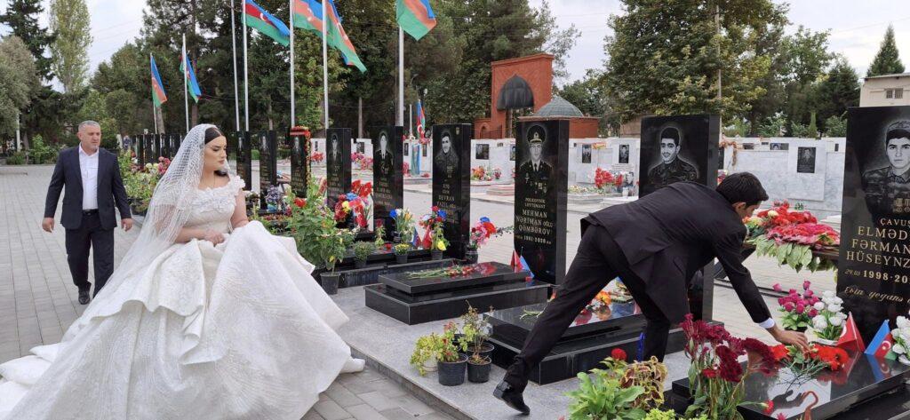 Məclisdən öncə bəylə gəlin Bərdə Şəhidlər Xiyabanını ziyarət edərək, bir-bir Şəhid məzarlarının üzərinə gül dəstələri qoyub, Şəhidlərin məzarları qarşısında baş əyiblər.