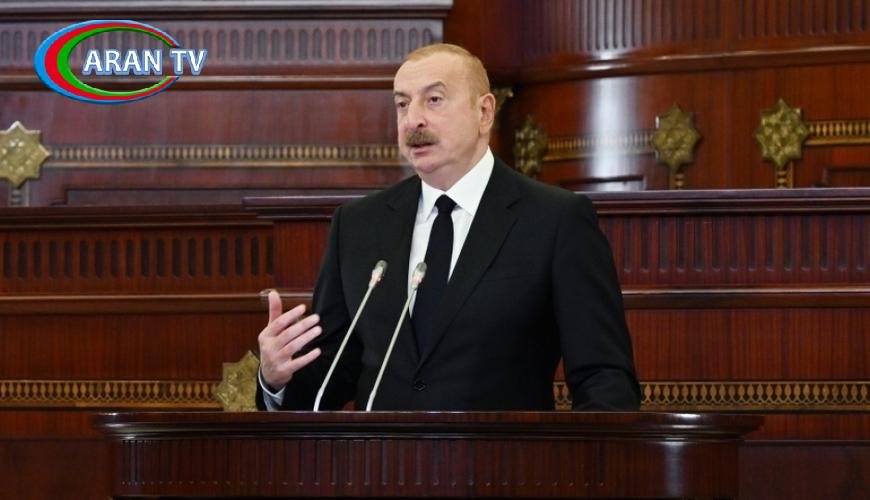 Dövlət başçısı habelə müasir dünyamızın daha bir acı reallığına diqqət çəkdi. Bildirdi ki, beynəlxalq hüquq anlayışı artıq tam sarsılıb, 2-ci Dünya müharibəsindən sonra formalaşmış təhlükəsizlik arxitekturası artıq mövcud deyil, “Kim güclüdür, o da haqlıdır” prinsipi üstünlük təşkil edir və artıq bəzi böyük dövlətlər bunu heç gizlətmirlər də.