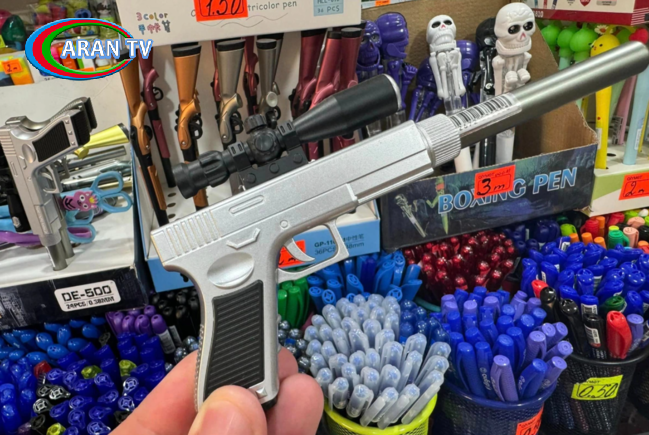 Belə ki, məktəb ləvazimatları satılan mağazaların birində şagirdlərin psixologiyasına təsir edəcək silah formasında qələmlər satışdadır.