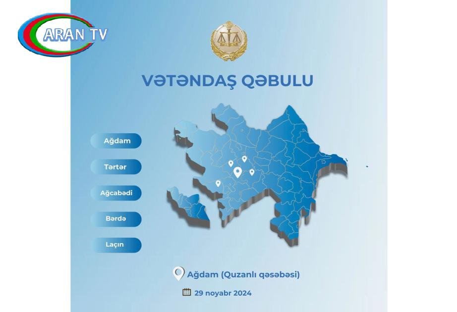 Ədliyyə naziri Fərid Əhmədov 2024-cü il noyabrın 29-da Ağdam rayonunun Quzanlı qəsəbəsində Ağdam, Tərtər, Ağcabədi, Bərdə və Laçın rayon sakinlərini qəbul edəcək.