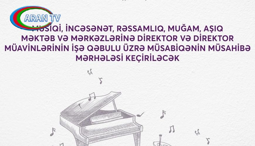 Mədəniyyət Nazirliyinin tabeliyində olan musiqi, incəsənət, rəssamlıq, muğam, aşıq məktəb və mərkəzlərinə direktor və direktor müavinlərinin işə qəbulu üzrə müsabiqənin növbəti mərhələsi – müsahibə mərhələsi keçiriləcək.