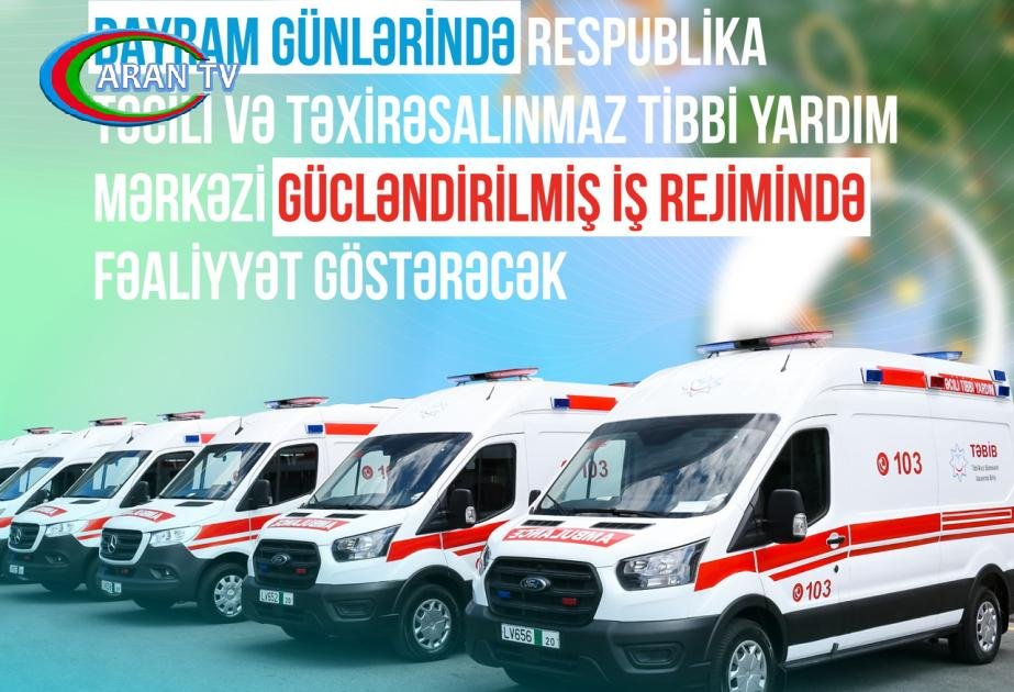 Yeni il bayramı ilə əlaqədar qeyri-iş günlərində Respublika Təcili və Təxirəsalınmaz Tibbi Yardım Mərkəzi gücləndirilmiş iş rejimində fəaliyyət göstərəcək.