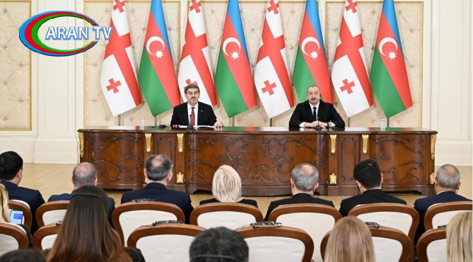 Azərbaycan Respublikasının Prezidenti cənab İlham Əliyev çıxışının əvvəlində Gürcüstanın Prezidenti cənab Mixeil Kavelaşvilini bir daha salamladı. Prezident vəzifəsinə seçilməsi münasibətilə bir daha təbrik edib, uğurlar arzuladı. Prezident vəzifəsinə seçiləndən sonra ilk rəsmi səfərinin Azərbaycana etməsindən şad olduğunu, bunun Azərbaycanda çox yüksək qiymətləndirildiyini, Gürcüstan-Azərbaycan əlaqələrinin mahiyyətini, xalqlarımızın dostluğunu, qardaşlığını göstərdiyini bildirdi. Dövlətimizin Başçısı çıxışında qeyd etdi ki, əsrlər boyu bizim xalqlarımız sülh, mehribanlıq, qardaşlıq şəraitində yaşamışlar. Bu gün də bu, belədir. Dövlətlərarası münasibətlər də yüksək səviyyədədir. Gürcüstan və Azərbaycan birgə bir çox önəmli layihələri icra ediblər və bu layihələr həm ölkələrimiz üçün, xalqlarımız üçün, həm də daha geniş coğrafiya üçün böyük önəm daşıyır. Təbii olaraq siyasi əlaqələr inkişaf edir. Yüksəksəviyyəli təmaslar müntəzəm xarakter daşıyır, siyasi dialoq fəaldır. Yəni, iki dost, qardaş ölkə, sözün əsl mənasında, bir-birinə çox bağlıdır və beynəlxalq təşkilatlarda da daim bir-birini dəstəkləyir. Bizi birləşdirən bir çox sərmayə layihələri qeyd etdiyim kimi, böyük coğrafiya üçün önəmlidir. Azərbaycanın və Gürcüstanın birgə həyata keçirdiyi neft-qaz layihələri, neft-qaz kəmərləri, nəqliyyat, kommunikasiya layihələri, sözün əsl mənasında, böyük əhəmiyyət daşıyan layihələrdir və nəinki Cənubi Qafqazın, Avrasiya regionunun nəqliyyat və enerji xəritəsini yenidən tərtib edən layihələrdir. Əgər biz bu gün Avropanın enerji təhlükəsizliyi haqqında danışırıqsa, bunu Azərbaycansız, Gürcüstansız təsəvvür etmək mümkün deyil. Hazırda Gürcüstan daxil olmaqla Azərbaycan 12 ölkəyə təbii qaz ixrac edir və bu ixrac Gürcüstan vasitəsilə həyata keçirilir. Nəqliyyat-kommunikasiya sahəsində əldə olunmuş nailiyyətlər, yeni inşa edilmiş dəmir yolları, limanlar həm Azərbaycanda, həm də Gürcüstanda böyük sinergiya yaratmış və əslində, Orta Dəhlizin ayrılmaz hissəsinə çevrilmişdir. Əgər bu gün biz Cənubi Qafqazda Orta Dəhliz layihəsindən danışırıqsa, bu, Azərbaycandan və Gürcüstandan keçən dəhlizdir. İldən-ilə ölkələrimizin ərazisindən keçən yüklərin həcmi artır və bu yüklərin həcminin artırılması üçün əlavə addımlar atılır.