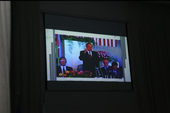 Tədbirdə Azərbaycan xalqının Ümummilli Lideri Heydər Əliyevin həyat və fəaliyyətindən bəhs edən “Əsrin adamı” filmi nümayiş olunub.