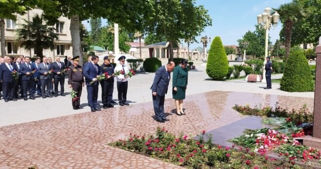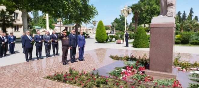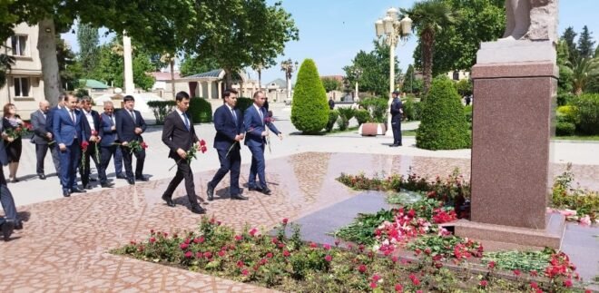 Tədbir iştirakçıları əvvəlcə Ulu Öndər Heydər Əliyevin abidəsi önünə gül dəstələri düzərək dahi şəxsiyyətin əziz xatirəsini ehtiramla anıblar.