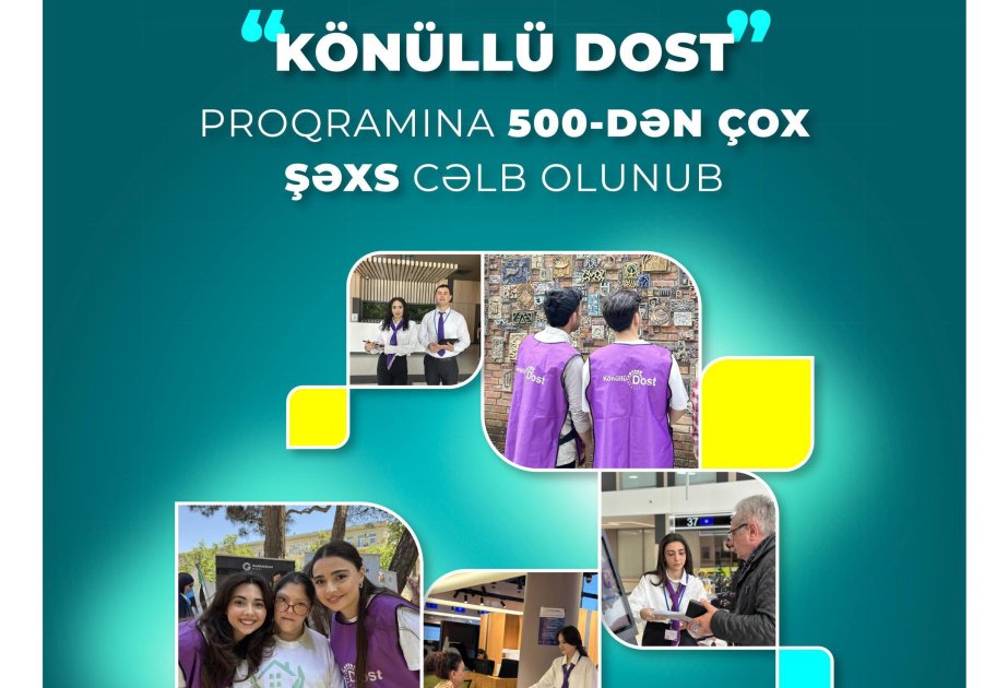 Azərbaycanda könüllülük hərəkatının genişlənməsində mühüm rola malik “Könüllü DOST” proqramına bu ilin dörd ayı ərzində 11,4 min müraciət olub, 523 şəxs proqrama cəlb olunub.