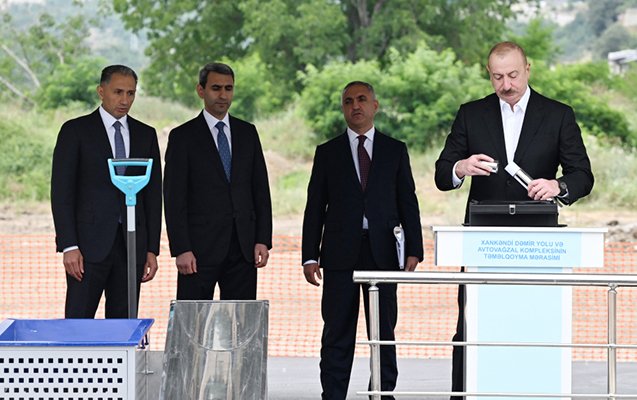 Azərbaycan Prezidenti İlham Əliyev bu gün Xankəndi Dəmir Yolu və Avtovağzal Kompleksinin təməlini qoyub.