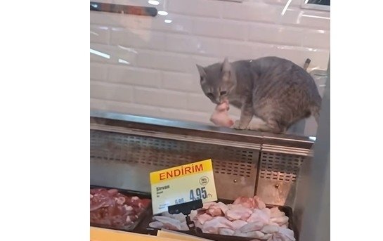 Sosial şəbəkələrdə yayılan görüntülərdə marketlərin ət və ət məhsulları şöbəsində satışa qoyulan ətlərin pişiklər tərəfindən yeyilməsi hər dəfə müzakirələrə yol açır.