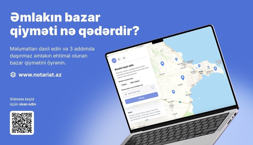 ARANTV.AZ xəbər verir ki, bu rəqəmsal xidmət daşınmaz əmlakın alqı-satqısı zamanı həm vətəndaşların, həm də notariusların istifadəsi üçün nəzərdə tutulub. Belə ki, yeni xidmət vasitəsilə alqı-satqı zamanı istər vətəndaşlar, istərsə də notariuslar mənzil, torpaq sahəsi, yaşayış və qeyri-yaşayış kateqoriyaları üzrə daşınmaz əmlakın təxmini bazar qiymətini hesablaya biləcəklər.