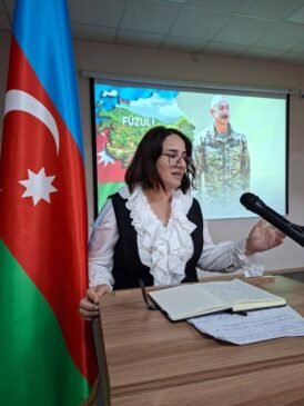 44 günlük Vətən müharibəsində yoldaşı qəhrəmancasına şəhid olmuş məktəbin ingilis dili müəllimi Könül Namazlı çıxışında qeyd edib ki, bu gün qazandığımız azadlıq və qürur dolu günləri şəhidlərimizin canı, qanı bahasına əldə etmişik. O, şəhidlərin ruhuna dərin ehtiramını ifadə edərək, Müzəffər Ali Baş Komandanımıza və qəhrəman Ordumuza minnətdarlığını bildirib.