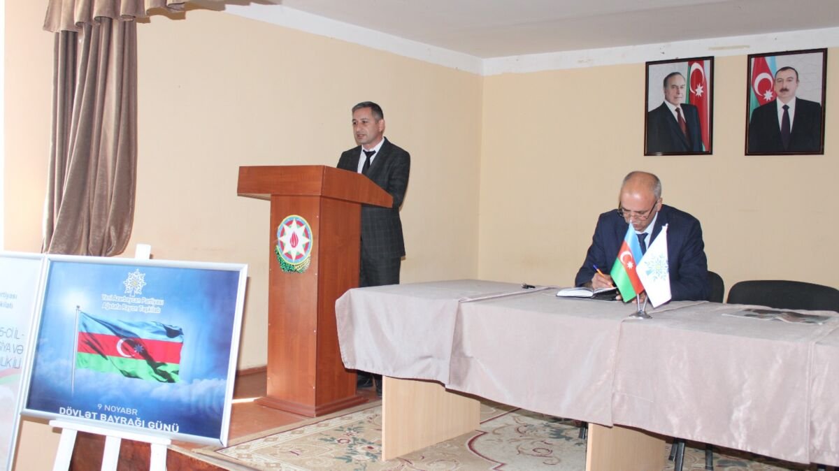 Tədbiri giriş sözü ilə açan Ağstafa şəhər 1 №-li tam orta ümumtəhsil məktəbinin direktoru Ramiz Nəsirov qeyd edib ki, noyabrın 9-u Azərbaycanda Dövlət Bayrağı Günüdür. 2009-cu il noyabrın 17-də Prezident İlham Əliyev “Azərbaycan Respublikasının Dövlət Bayrağı Gününün təsis edilməsi haqqında” Sərəncam imzalayıb. Həmin il dekabrın 4-də isə Milli Məclis noyabrın 9-nu Dövlət Bayrağı Günü kimi rəsmiləşdirib. Müstəqilliyini bərpa etdikdən sonra Azərbaycanın dövlət bayrağı milli suverenliyin simvolu kimi ölkəmizin bütün vətəndaşları üçün müqəddəs dövlətçilik rəmzlərindən birinə çevrilib. Azərbaycan Xalq Cümhuriyyətinin yadigarı olan bu bayraq xalqımızın azadlıq məfkurəsinə, milli mənəvi dəyərlərə və ümumbəşəri ideallara sadiqliyini nümayiş etdirir.