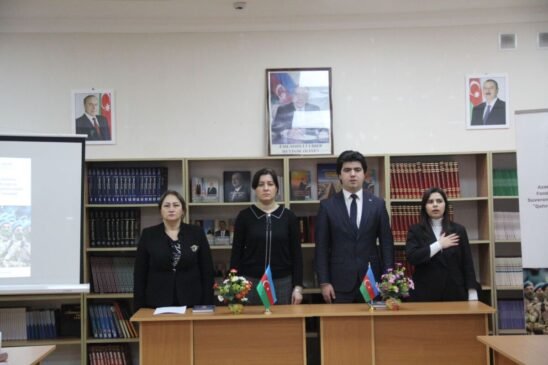 Tədbirdə iştirakçılara layihə rəhbəri Aynurə Şəmilova tərəfindən “Qəhrəmanlarımızı tanıyaq və tanıdaq” layihəsi haqqında məlumat verilib, məktəb direktoru Gülnarə Əliyeva layihənin həmin məktəbdə keçirilməsinin faydalılığı haqqında fikirlərini bildirmişdir. Qarabağ Regional Gənclər və İdman İdarəsinin Gənclərlə İş sektorun müdiri Orxan Fəxrəddinov dövlətin gənclər üçün yaratdığı imkanlardan danışıb. Sonda iştirakçıların sualları cavablandırılıb və Qəhrəmanlarımızı əks etdirən sənədli filmi izləyiblər.