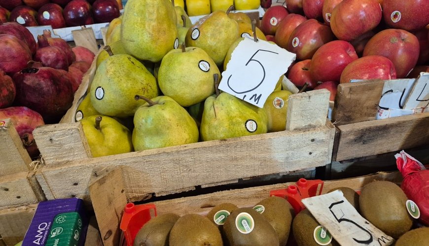 Eyni vəziyyət armud satışında da müşahidə edilir. Ən ucuz armudun qiyməti 2 manatdan başlayır, sulu və keyfiyyətli armudun qiyməti isə 4 manata qədər yüksəlib. Mandarinin qiyməti 2 manat 50 qəpik – 3 manat, bananın qiyməti isə 2 manat 20 qəpikdən 3 manata qədər dəyişir. Mövsümü olmasa da bazarda satılan üzümün qiyməti də 2 manat 50 qəpikdən 3 manat 50 qəpiyə qədər qalxıb.