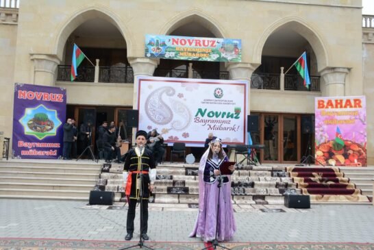Meydanda qədimi xalça-palazlar sərilib, Novruz süfrəsi qurulub. İştirakçılar Tarix-diyarşünaslıq muzeyinin sərgisinə, məktəblilərin və Uşaq Gənclər İnkişaf Mərkəzinin bahara həsr olunmuş rəsm və əl işlərinə baxıblar. Rayon idmançılarının güləş, boks, kikboksing üzrə çıxışları, kəndirbazların ifaları, yumurta və xoruz döyüşləri maraqla izlənilib. Meydanda Novruza xas olan bütün təamlar — yuxa, kətə, qovurğa, aş və müxtəlif şirniyyatlar süfrələrə düzülüb. Müdrik el ağsaqqalı Dədə Qorqud və Bahar qızı iştirakçıları salamlayaraq onlara xeyir-dua verib, Keçəl və Kosanın çıxışları tədbirə xüsusi rəng qatıb.