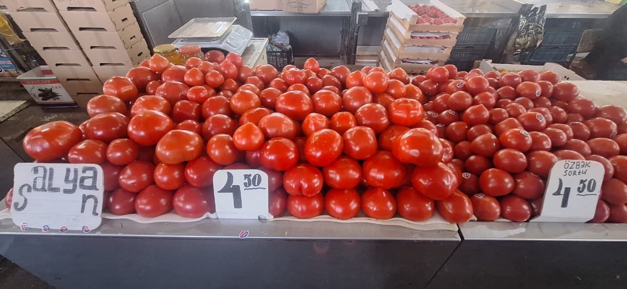 Bununla belə, qiyməti hələ də yüksək olaraq qalan məhsullar da var. Məsələn, pomidorun qiyməti 3,50 – 4 manat səviyyəsində qalmaqda davam edir. Göyərti dəstələri isə 25–30 qəpikdən satılır.